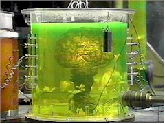 That same title kind of ruins things though. I cannot think of a cliff-hanger I love more than the end of episode two. The build up to actually seeing Morbius' brain is astounding, the ominous scene with the camera panning down the shadowy stairwell whilst Solon talks to somebody who is expertly kept out of shot. Compounding this appetite whetting you have Sarah, blinded by Maran's ring, hearing the malevolent voice and tripping down the stairs to discover its source. She stumbles into a room, reaching out for whoever is speaking to her and the camera moves backward to let us see what she cannot, a huge glowing brain encased in green fluid. It's absolute genius and I punch the air with joy every time I watch it! The brain, powerfully voiced by Michael Spice, looks fabulous and I love the way it breathes air bubbles just before the cliff-hanging music begins.