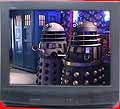 Looking back it now surprises me that Rowan Atkinson's name hasn't been more widely suggested as a potential Doctor. Whilst it is true that he is best known for his comedy work, this factor didn't stop William Hartnell or Jon Pertwee proving successful in the role, whilst many other artistes best known for their comedy work before and afterwards have given strong serious performances throughout the series' history. Wisely Atkinson plays the role seriously, contrasting effectively with Jonathan Pryce's Master and so the comic drama holds together a lot stronger than in many attempted spoofs. Julia Swalha appears as Emma, a companion who serves little more purpose than to ask questions, show how clever the Doctor is, look pretty and, in an interesting development, become the Doctor's love interest. Jonathan Pryce is cast as the Master and he takes every opportunity to steal each scene, sending up the part no end. The Daleks are also used and wisely there's no attempt to make jokes about their supposed inability to go up stairs but the design of their ships and their inability to actually kill the Doctor when they get the chance to are sent up instead.