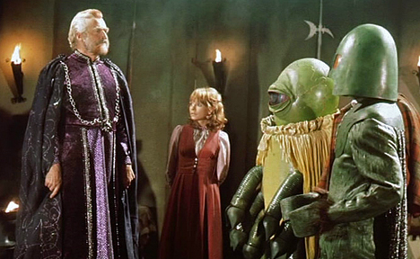 Director Lennie Mayne has often been critisised for substandard direction but it is just not true here. As well as giving the show a vivid, alien feel he also coaxes some fine performances from his cast that do justice to Brian Hayles' textured script. I can't think of any time in their history (except perhaps The Green Death) that Jon Pertwee and Katy Manning were better suited than they are here. There is a terrific scene here when they discuss the situation in their quarters when you can feel a genuine warmth and affection for each other, obviously leaking in from the actors too and it is heart warming indeed. Jo is especially good in her role as 'Princess Josephine of TARDIS', actually given something to do for a change like investigate the sabotage of Arcturus and have a sweet mini-romance with King Peladon. In fact her 'What do mercy and compassion mean to you?' speech is possibly her best moment in the entire show.