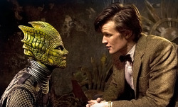 It's got a lot going for it. The elephant in the room going in was the redesign of the Silurians, and that has been pulled off marvelously by the production team. The Silurians look better than almost any old Who enemy done previously (with the possible exception of the RTD Daleks), appearing perfectly natural in both their stunningly realized environment and against their human counterparts. Overall, this is one of Doctor Who's best-looking episodes, with the industrial, dull near-future Welsh countryside balanced perfectly by the wondrous Silurian underworld. The drill's presence is felt through the entire first half, and yet we never lay eyes on it. This is tremendous work once again by Moffat's behind the scenes crew, who deserve to be commended at every opportunity.