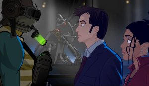 What does this have going for it? Well the animation is good though given its only competition in the Doctor Who world is the various webcasts that were limited by early 2000s internet connections and the other animated tenth Doctor story Dreamland, that perhaps isn't saying very much. The voice work is good as well with Tennant giving what was pretty much his standard performance as the Doctor while Freema Agyeman's line readings give the impression she was simply reading off pages of a script out loud. Much more memorable are Anthony Stewart Head as the villain and one time Big Finish stalwart Toby Longworth as a couple of "robot parrots". None of that though can really salvage it from its biggest faults though.