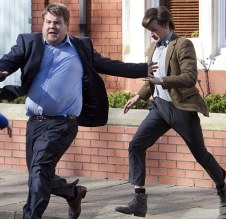 My main problem with this episode is its focus, trying so hard to do one element that it ignores others. Essentially the story explores how the Doctor, a nomadic misfit, can (try to) fit in with regular, human society. This involves him moving in with Craig Owens (James Corden). Admittedly, I like James Corden and his performance here is definitely the highlight of the episode (as oppossed to Peter Kay's). Owens is the Doctor's opposite and foil; their chemistry is, at points, genuinely funny - though sometimes a little cringing - and it's not giving much away to say that Owens has a love interest. All this gives the episode a sense of normality which, to be fair, is what it appears to be aiming for.