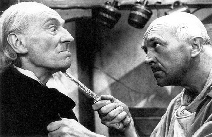 Hartnell is in fine form, too. He fluffs a couple of lines, but recovers nicely ("Good heavens, well, you are inspired," he says, his second time through the line). He approaches interactions with each guest actor differently, showing off a devilish gleam, moral outrage, bluster or kindness, as the needs arise. Under Lloyd and Davis, the character has become a stark force for moral good. The Doctor resolves the plot halfway through episode 3, by getting Blake to bring in the militia to stop the pirates, but when Polly tries to get him to leave early, he refuses, saying that he has a "moral obligation" to the village to see it through. In Episode 4, he bargains with Pike, agreeing to let him have Avery's buried treasure if he promises to prevent the pirate crew from slaughtering any innocents. Going back to Season 1, you'd never have guessed that the Doctor, the Hartnell Doctor, would become a moral crusader, but he has, and that may be the Lloyd/Davis regime's finest gift to Doctor Who.